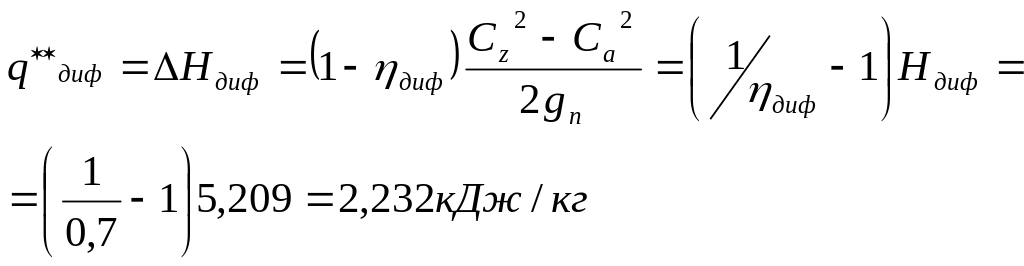 18. Конечное состояние газа за турбиной (перед диффузором) определяется из выражения потенциальной работы в условиях малых теплоперепадов: