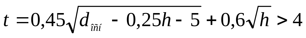 Намітка верхнім знаком виконується на глибину h dосн, нижнім – на глибину h < 0,8dосн, де dосн – діаметр основи намітки, який дорівнює діаметру отвору деталі, зменшеному на величину припуску на механічну обробку. Товщину перемички t, мм, визначають за формулою: |