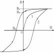 Рис.2.7 Криві намагнічування феромагнетика В(Н): 1 – початкова крива; 2 – основна петля гістерезіса |
