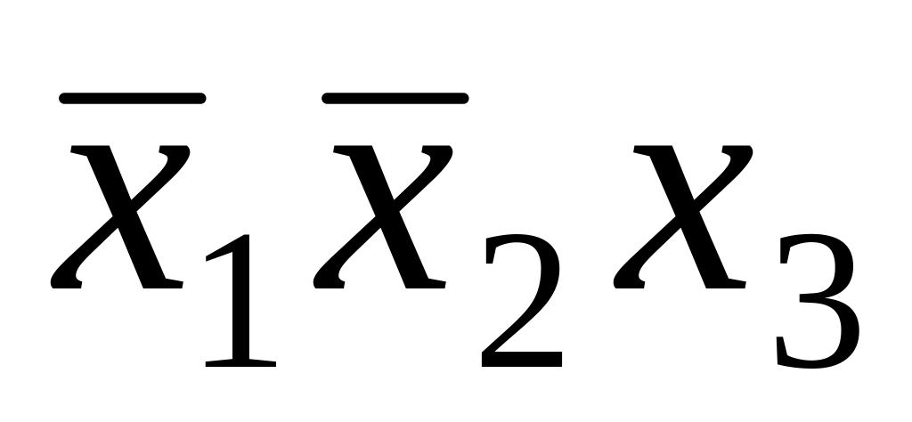 для выделенных строк записывают минтермы (конституенты 1), т. е. произведения аргументов, причем если какой-нибудь аргумент в строке равен нулю, то берется его отрицание;