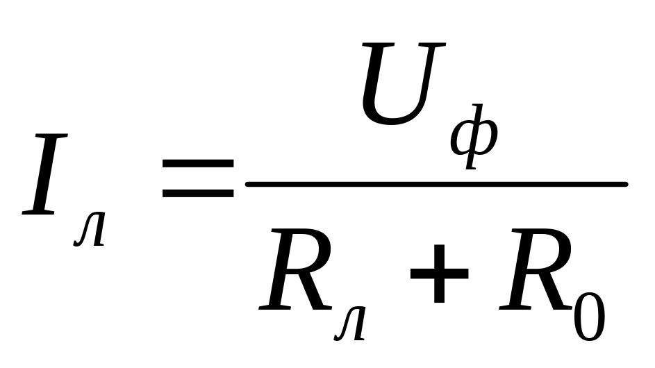 Для трифазної чотирипровідної мережі з глухозаземленою нейтраллю за нормального режиму роботи сила струму, що проходіть через тіло людини за однофазного дотику, розраховується за формулою: