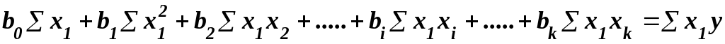 Для определения параметров уравнения составляют систему уравнений, которая в общем случае k переменных и n строк эмпирических данных принимает вид: