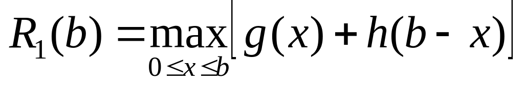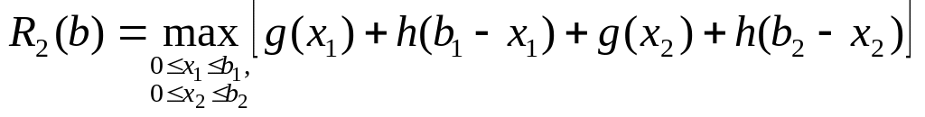 Розглянемо тепер — найбільший прибуток, що може бути отриманий від початкової суми b за два періоди. Очевидно це значення буде розраховуватись, як максимальна сума доходів першого та другого періодів: