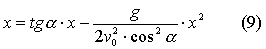 Исключая из двух первых равенств системы (4) время, легко получить уравнение траектории: