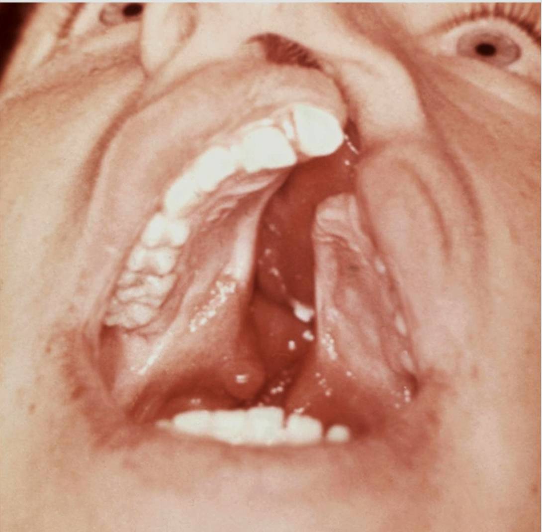 Трисомия по 22-ой хромосоме. В литературе описано около 30 случаев трисомии по 22-ой хромосоме. Эти дети – глубокие олигофрены. У них выражены микроцефалия, клювовидный нос, низко расположенные ушные раковины, расщепление нёба (рисунок 35), гипоспадия, гипотония мышц. Такие дети рождаются у родителей с нераспознанным мозаицизмом. Диагноз можно установить на основании исследования кариотипа.