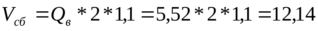 Объем емкости для умягчения воды рассчитывается на двухчасовой запас воды с учетом 10% запаса вместимости: