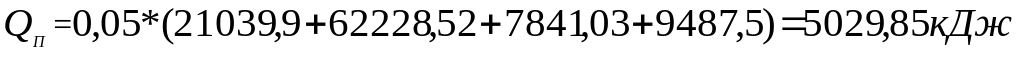 Потери тепла кДж, в окружающую среду определяется по формуле: