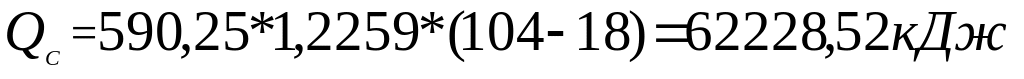 Расход тепла на нагрев воды кДж, определится по формуле: