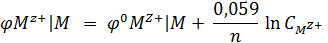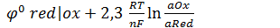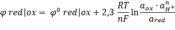 где aOx и aRed – активность окисленной и восстановленной формы вещества; n – число электронов, участвующих в окислительно-восстановительном процессе;