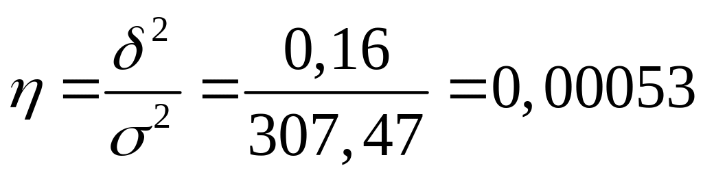 Следовательно, различия в товарообороте между отдельными предприятиями города объясняются формой собственности предприятий (делением на государственные и частные) на 0,00053% и на 99,99947% – другими, неучтенными факторами.