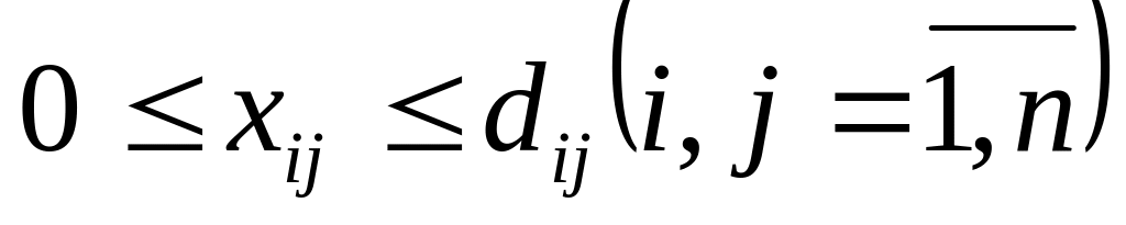 Обозначим xij – количество перевозимого груза из i-ого пункта в j-ый пункт (i,j=1,…,n).