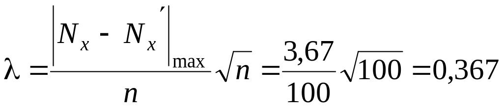 в которых и - накопленные теоретические и эмпирические частоты; n - объем выборки. При этом считаем, что накопленной частотой любого m значения xi является сумма частот всех предшествующих значений xi, включая и частоту самого xi