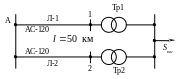 Рассчитать напряжение на высокой стороне п/ст., если напряжение на источнике UA = 115 кВ. Сеть выполнена проводами АС-120, с расстоянием между фазами 4 м. Произвести расчет параметров режима, выполнив 2 итерации. Проанализировать, какие результаты расчета изменятся и насколько, если п/ст. будут работать с трансформаторами включенными параллельно.