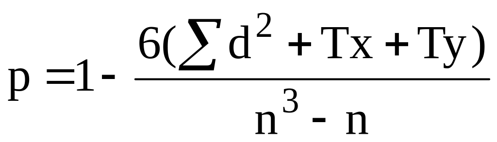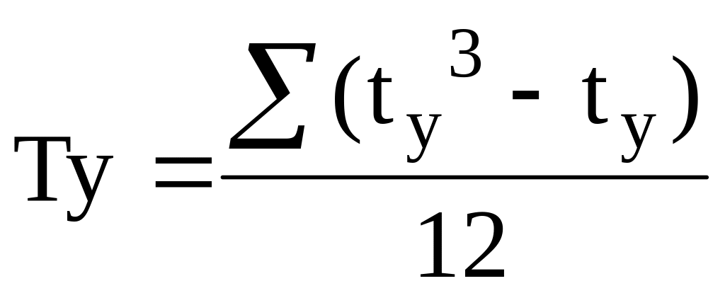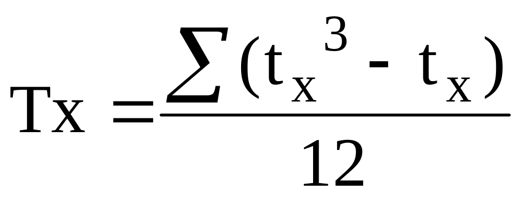 де: tx — кількість об’єднаних рангів першого ряду; ty — кількість об’єднаних рангів другого ряду.