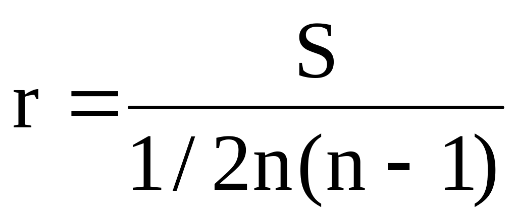 Коефіцієнт кореляції рангів Кєндела обчислюється за формулою