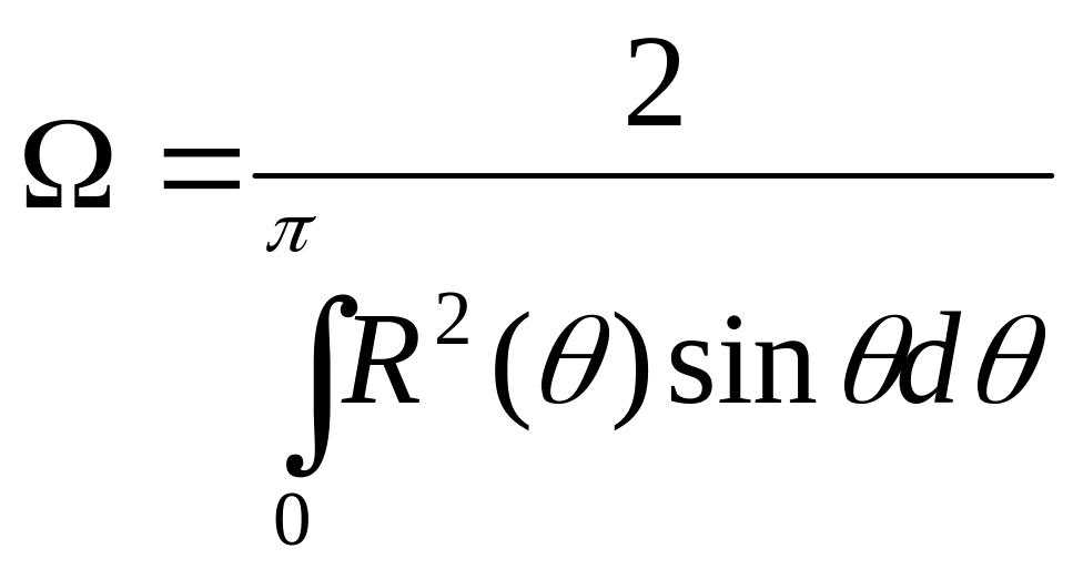 В которую подставим заданное в техническом задании значении коэффициента осевой концентрации Ω (КОК) и выражение для характеристики направленности (3.2). Далее, после несложных вычислений, получим выражение для нахождения эксцентриситета характеристики направленности излучателей: