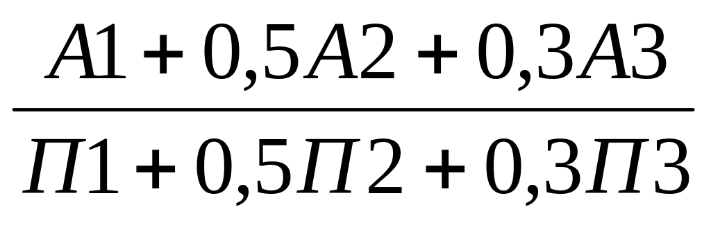 L3 - показывает, какая часть краткосрочных обязательств организации может быть немедленно погашена за счет средств на различные счетах, в краткосрочных ценных бумагах, а также поступлений по расчетам.