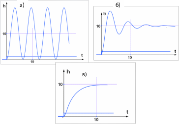 Рис. 8. Переходные характеристики h(t) звеньев 2-го порядка в зависимости от параметра : а) = 0;