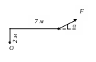 Вектор момента силы F относительно точки A составляет угол _____ с осью OX.