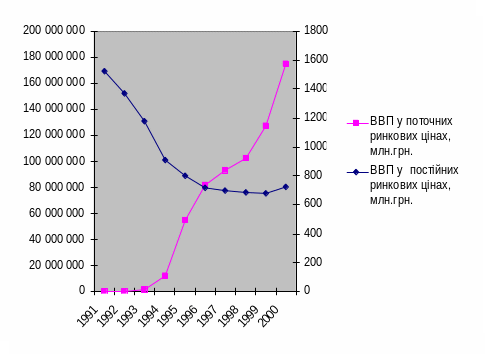 Динаміка валового внутрішнього продукту України у 1991-2000 рр.