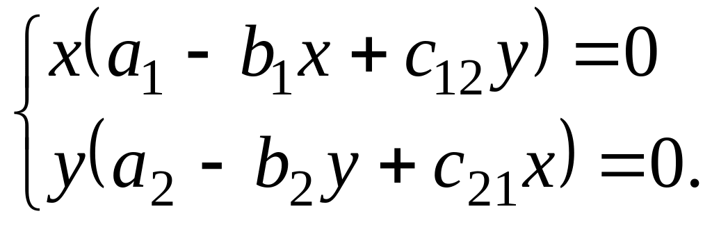 Перейдем теперь к модели конкуренции ( ) и исследуем стационарные состояния: