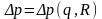 в функции массы горючей компоненты ГПВС q и расстояния R от места подрыва,
