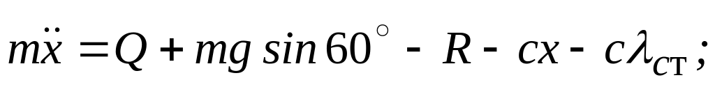 Отримане рівняння (а) є диференційним рівнянням руху вантажу Д. З математичної точки зору це є неоднорідне лінійне диференційне рівняння другого порядку. Розв’язання його складається з двох частин