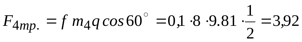 2. Сила тертя вантажу 4 з площиною нахиленою до горизонту під кутом рівна