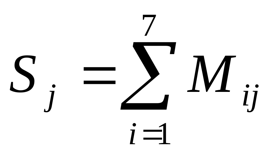 Дана матрица действительных чисел M размером 7х7. Сформировать массив S1,…, S6, каждый элемент которого равен сумме элементов соответствующего столбца матрицы M: