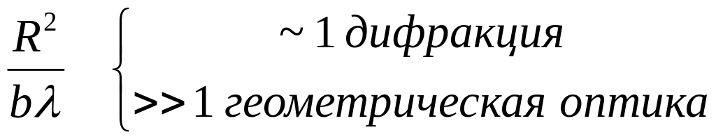 В качестве R можно рассматривать линейный размер препятствия, в качестве b - расстояние либо от препятствия до точки наблюдения, либо от источника света до препятствия.