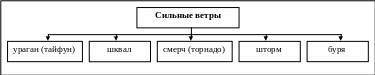 Ураган (тайфун). Это ветер огромной разрушительной силы скоростью 117 км/час и более, продолжительностью несколько суток. Ураганы сопровождаются выпадением большого количества осадков и понижением температуры воздуха. Ширина урагана составляет от 20 до 200 километров. Чаще всего ураганы проносятся над США, Бангладеш, Кубой, Японией, Антильскими островами, Сахалином, Дальним Востоком. Каждому урагану синоптики присваивают имя или четырехзначный номер. Ураганы несут в себе колоссальную энергию.