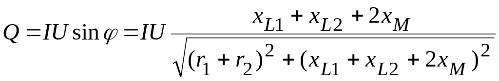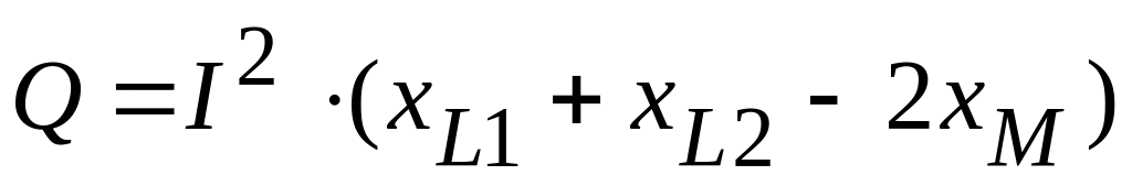 При встречном включении поток взаимной индукции оказывает размагничивающее действие на основной поток. Величина реактивной мощности, потребляемая из сети, в этом случае равна