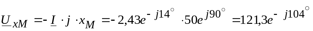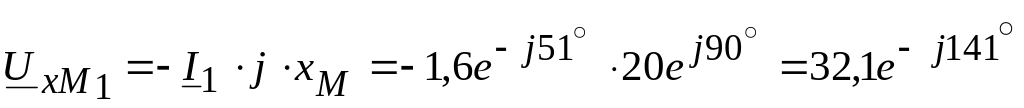 Пример 4.10. Цепь состоит из двух индуктивно связанных катушек, соединенных параллельно (рис. 4.18), с параметрами r1 = 30 Ом, x1 = 60 Ом, r2 = 100 Ом, x2 = 40 Ом, xM = 20 Ом, u = 100 В. Требуется рассчитать ток и напряжения на каждой катушке, построить векторную диаграмму.