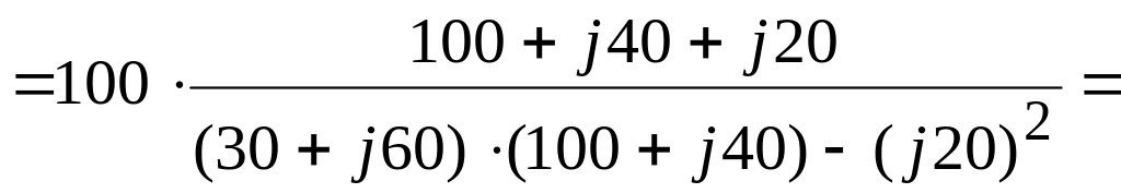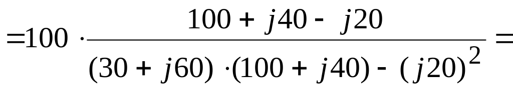 Пример 4.12. Цепь состоит из двух индуктивно связанных катушек, соединенных параллельно (рис. 4.18), с параметрами r1 = 30 Ом, x1 = 60 Ом, r2 = 100 Ом, x2 = 40 Ом, xM = 20 Ом, u = 100 В. Требуется рассчитать ток и напряжения на каждой катушке, построить векторную диаграмму.