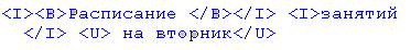 1. Внесите изменения в текст файла HTML, расположив слова “Расписание”, “занятий”, “на вторник” на разных строках: