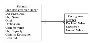 Грузоподъемность корабля не зависит от даты убытия, и зависит только от корабля (изъятие зависимых атрибутов из сущности Shipment и создание связанной подчиненной сущности Shipment).
