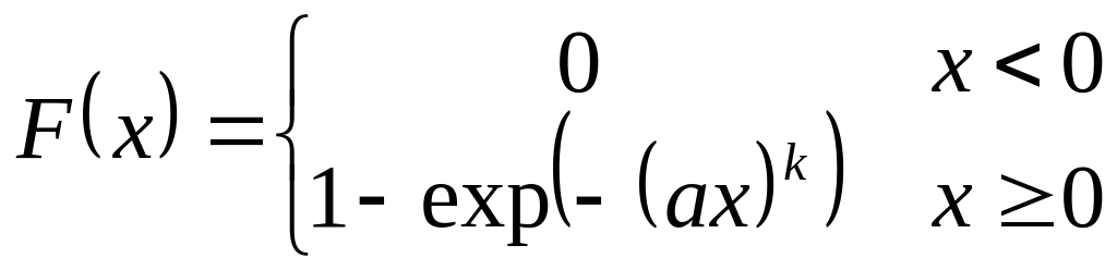где a – масштабный множитель, k – параметр формы. Плотность вероятности имеет вид