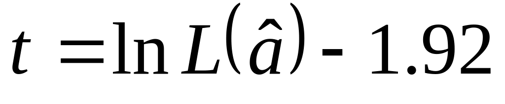 а в выражение для второй производной логарифма правдоподобия без цензурирования подставим вместо истинного значения параметра a его оценку . Получим