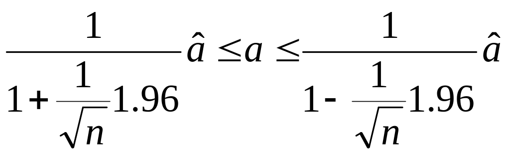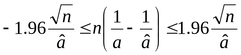 Преобразуя, получим, что с вероятностью 0.95 истинное значение параметра a лежит между границами