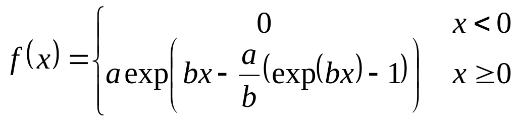 где a – «начальная смертность», b – «темп старения». Плотность вероятности имеет вид