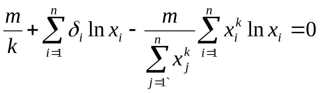 Для получения оценки максимального правдоподобия параметра формы k необходимо решить другое уравнение. Запишем