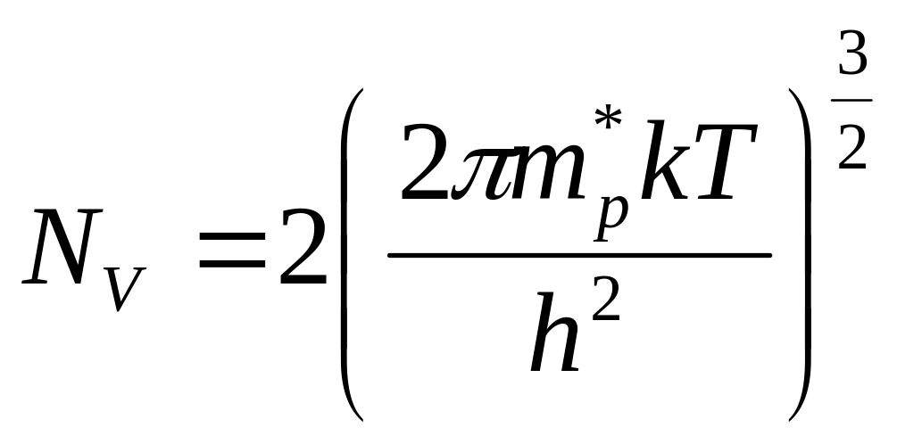 где NC и NV – эффективные плотности состояний электронов и дырок в зонах проводимости и валентной зоне соответственно: