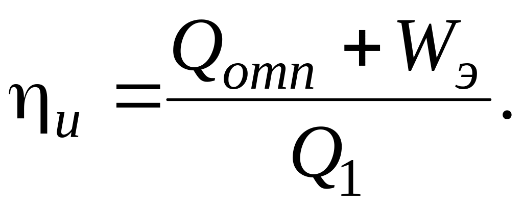 Для оценки экономичности теплофикационного цикла пользуются коэффициентом использования теплоты ηи, представляющим собой отношение всего количества полезно использованной теплоты Qотп и выработанной электроэнергии Wэ к подведенной теплоте Q1, полученной от сжигания топлива: