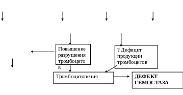 Наиболее частой причиной развития тромбоцитопении является иммунная деструкция кровяных пластинок под действием ауто-, алло-, или лекарственно-индуцированных антител. Возможный патогенез иммунной тромбоцитопении представлен на рис.1.