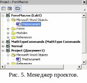 Окно менеджера проектов содержит дерево открытых в данный момент шаблонов и документов (Error: Reference source not found), и как минимум, там должны присутствовать: