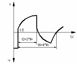 Для определения места повреждения при большей длине кабеля необходимы выпрямительные установки большей мощности, которые и используются при проведении места повреждения методом колебательного разряда. Суть метода заключается в измерении периода (полупериода) свободных колебаний, возникающих в заряженной кабельной линии при пробое изоляции в месте повреждения. При измерении на жилу кабеля подается высокое напряжение, но не выше допустимого, отрицательной последовательности (рис. 5.1). В месте повреждения в момент пробоя напряжение падает до нуля, что соответствует моменту времени