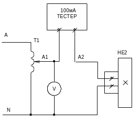 Проверить правильность монтажа при помощи тестера. Подготовить стенд к работе от сети: вывести регулятор ЛАТРа в положение, соответствующее минимальному выходному напряжению, убедиться, что остальные аппараты, неиспользуемые в работе не попадут под напряжение при включении стенда.