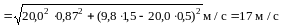 h = y = osin – gt2/2 = [20,00,51,5-9,8(1,5)2/2] м = 4,0 м. (5)