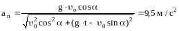 Для определения нормального и тангенциального ускорения учтем, что полное ускорение тела, движущегося в поле земного тяготения, есть не что иное как ускорение g силы тяжести. Разложив вектор g на составляющие по нормальному и касательному направлению к траектории в точке М – получим (рис. 1):
