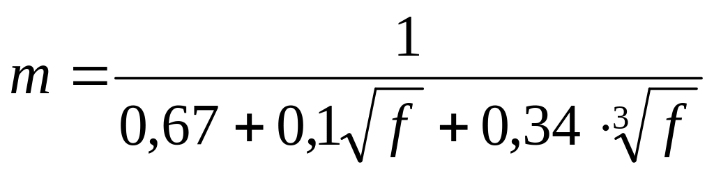 Коэффициент m определяется в зависимости от значений показателя f по формулам: